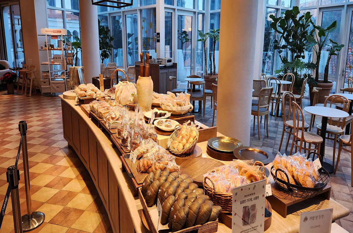 갓구운 빵과 신선한 원두를 사용한 향기로운 커피가 제공되는 카페