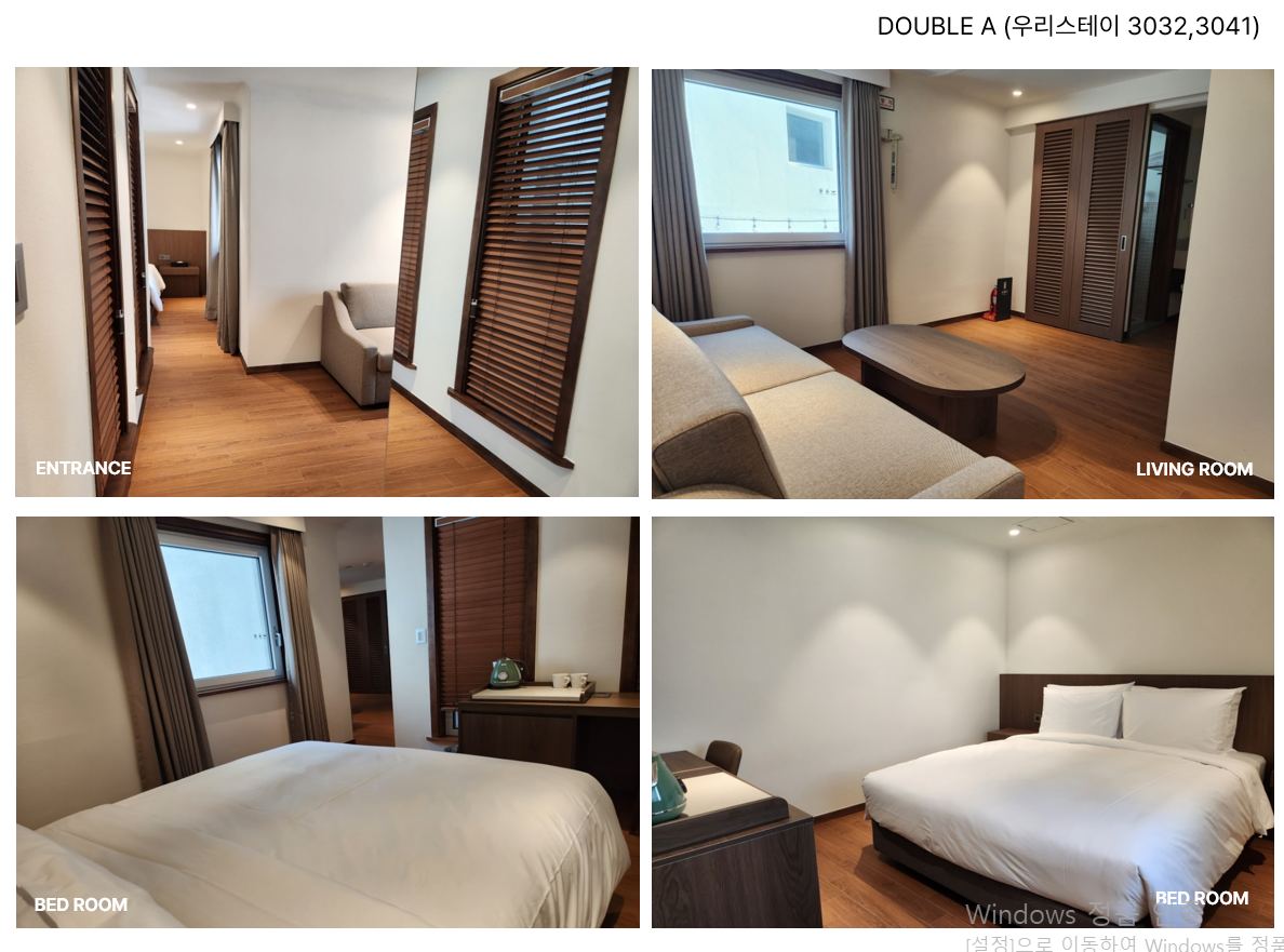 · 침구추가는 인원추가가 가능한 객실에 한하여 1세트(매트리스, 이불, 수건, 생수)당 22,000원의 추가 비용으로 제공되며 예약시 또는 입실당일 17:00까지 요청 가능합니다. (당일 요청시, 수량이 한정되어 제공이 어려울 수 있습니다)