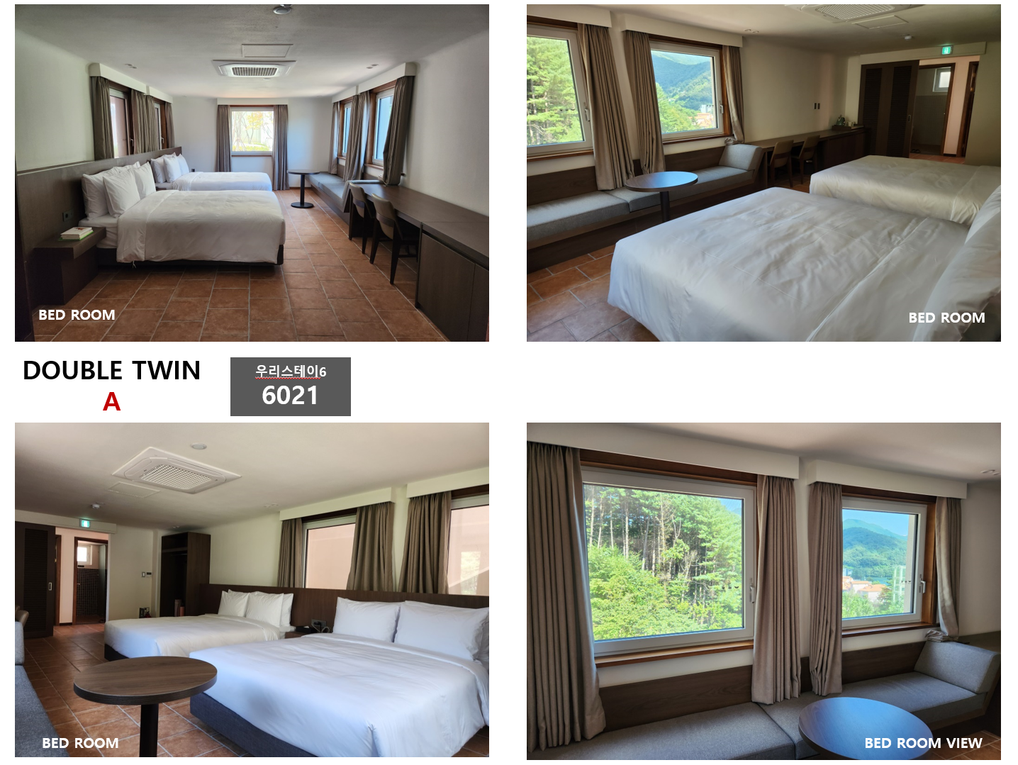 · 침구추가는 인원추가가 가능한 객실에 한하여 1세트(매트리스, 이불, 수건, 생수)당 22,000원의 추가 비용으로 제공되며 예약시 또는 입실당일 17:00까지 요청 가능합니다. (당일 요청시, 수량이 한정되어 제공이 어려울 수 있습니다)