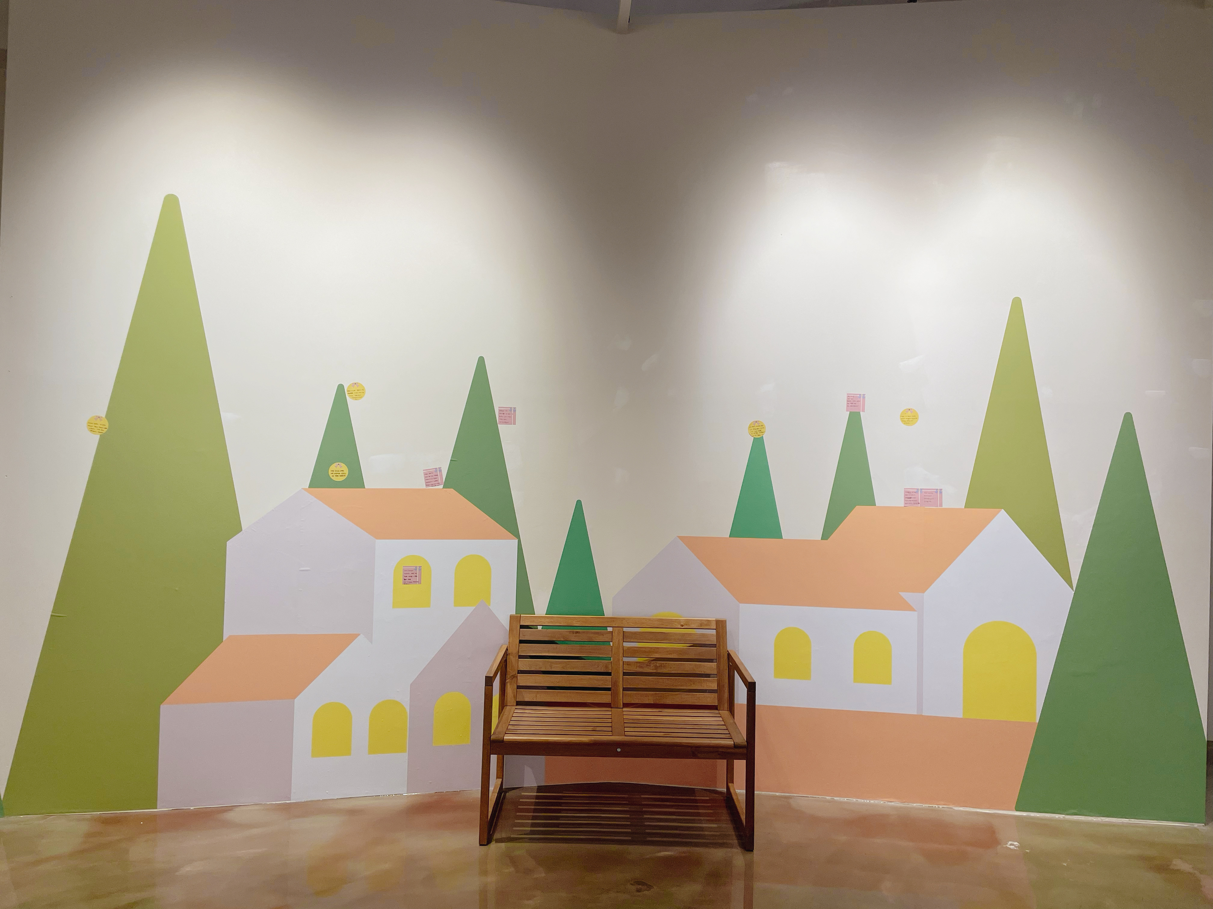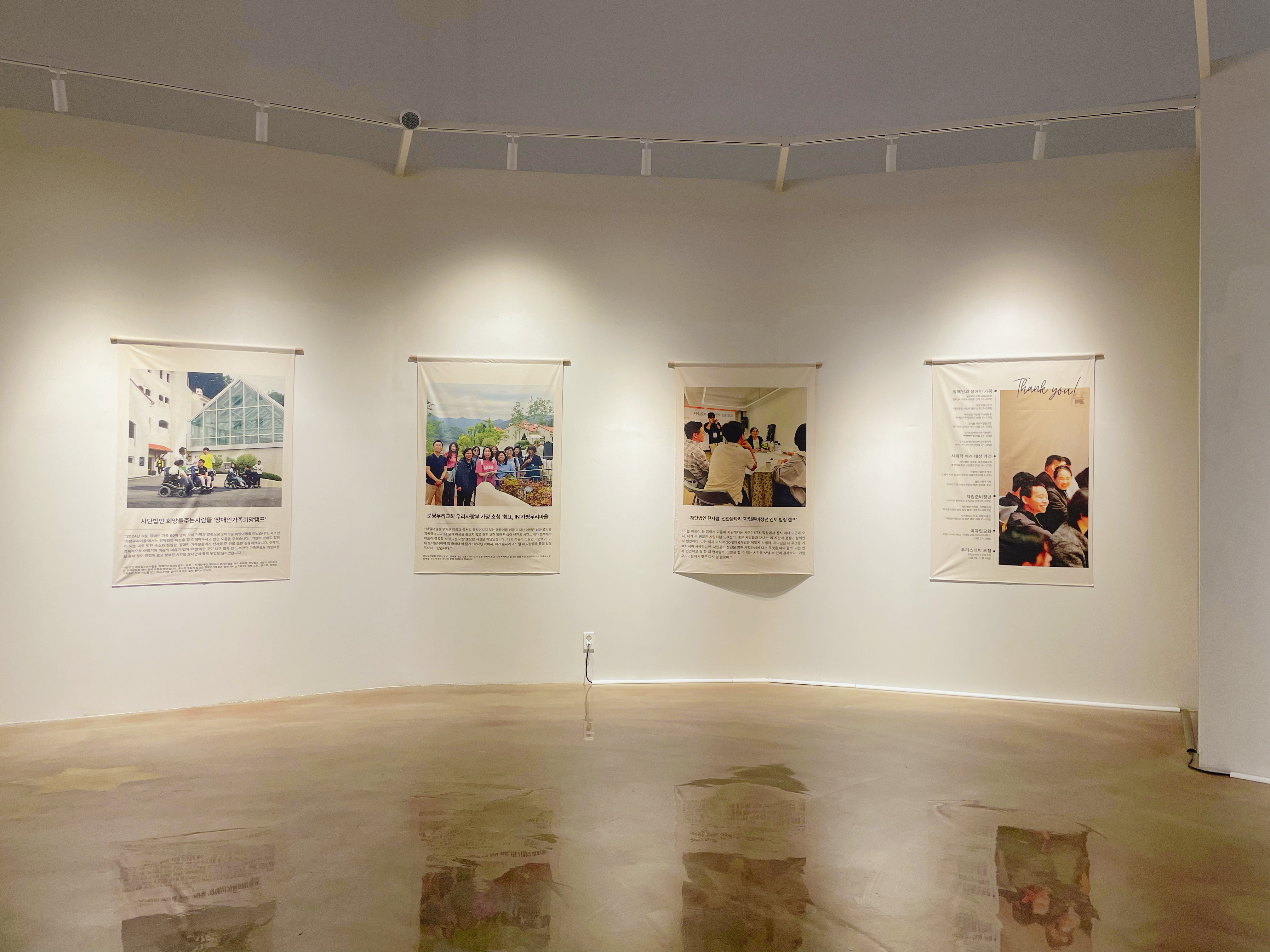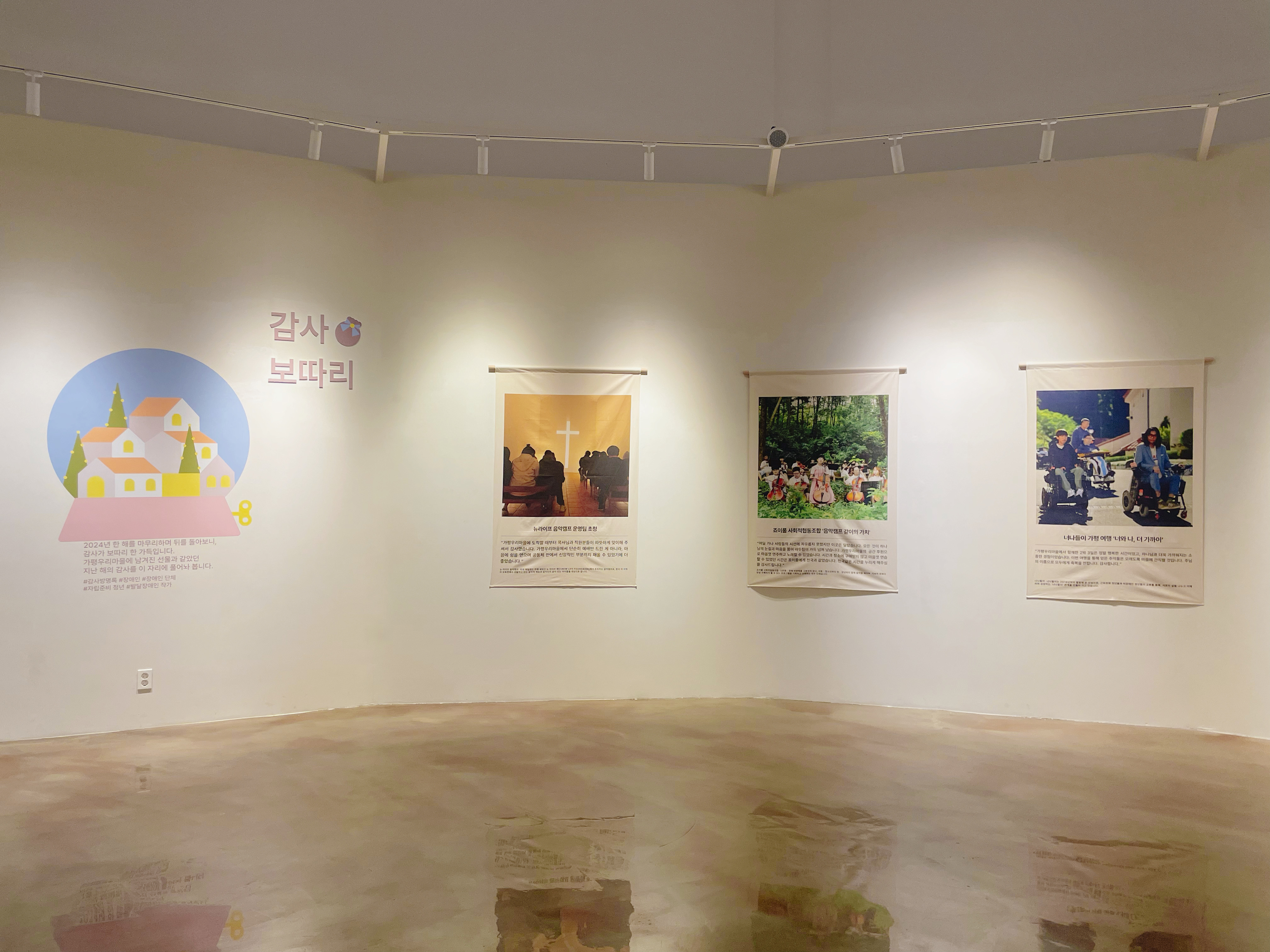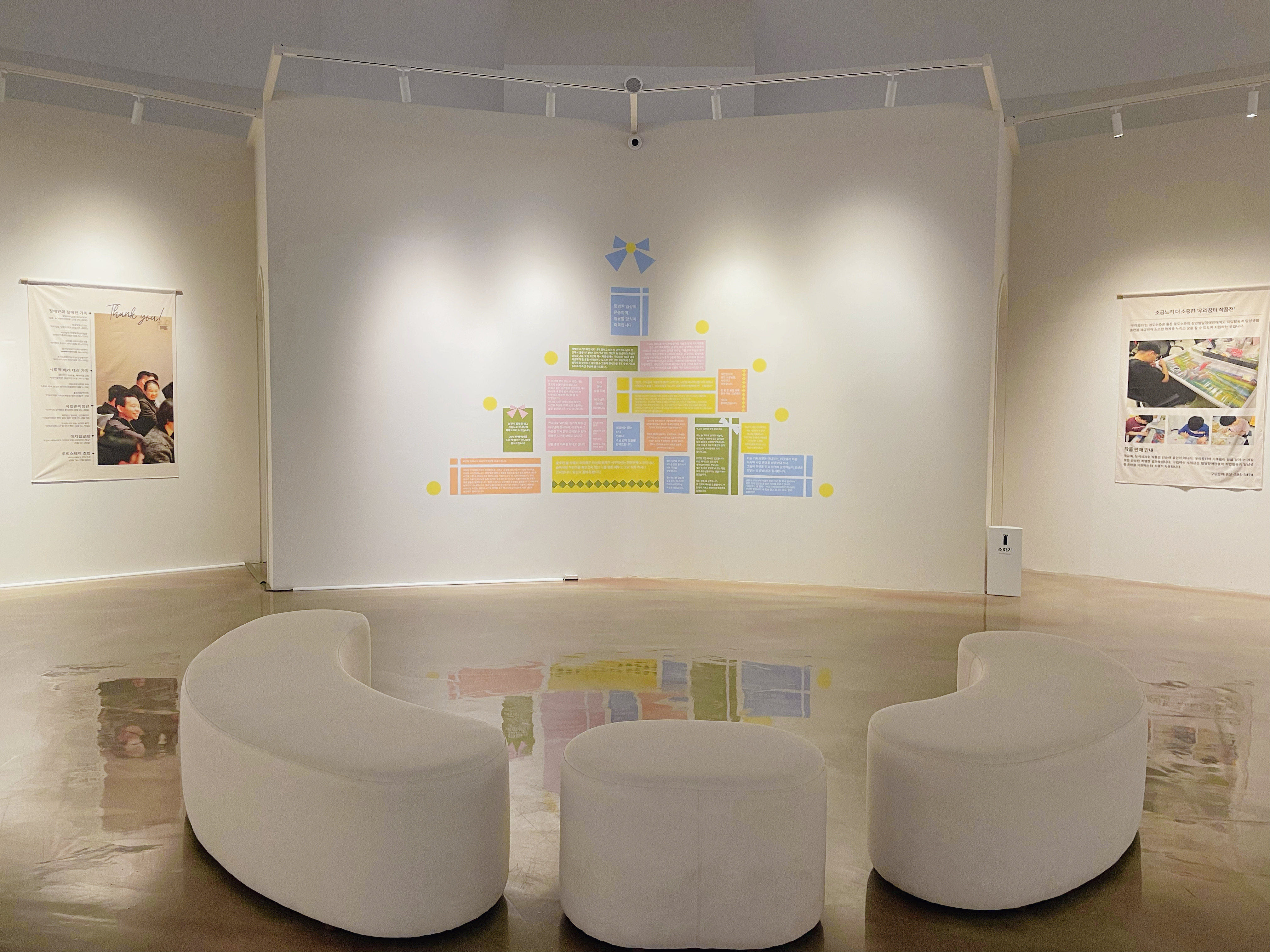 갤러리 안쪽 벽면을 감사로 장식해 주세요.