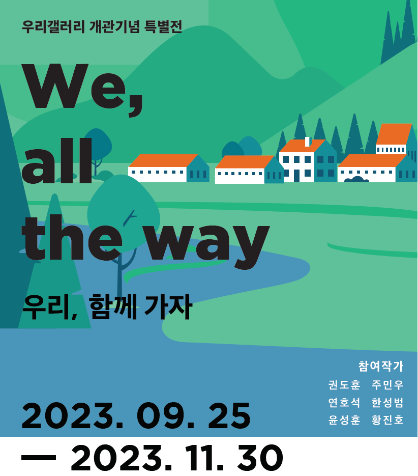 · 우리 갤러리에서 특별한 전시가 열립니다. · 참여작가 : 권도훈, 연호석, 윤성훈, 주민우, 한성범, 황진호 · 전시기획 : 비채아트뮤지엄 · 관람대상 : 가평우리마을 방문고객 누구나 (자유관람)