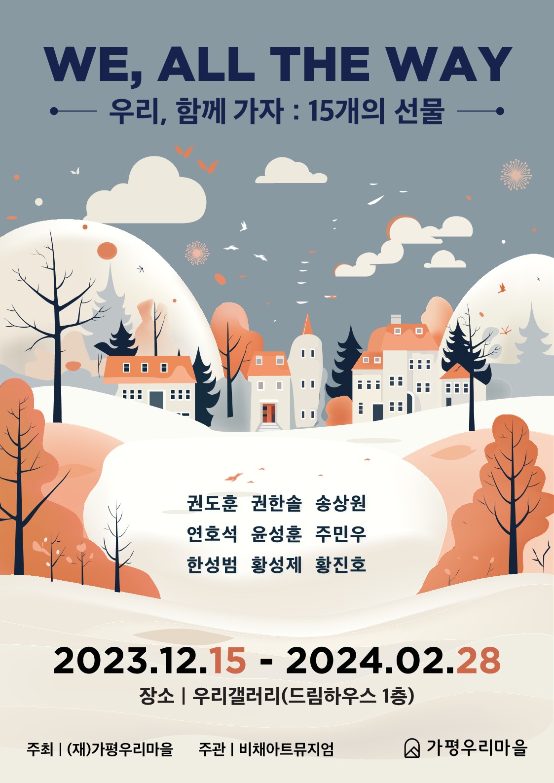 · 참여작가 : 권도훈, 권한솔, 송상원, 연호석, 윤성훈, 주민우, 한성범, 황성제, 황진호 · 전시기획 : 비채아트뮤지엄 · 관람대상 : 가평우리마을 방문고객 누구나 (자유관람)