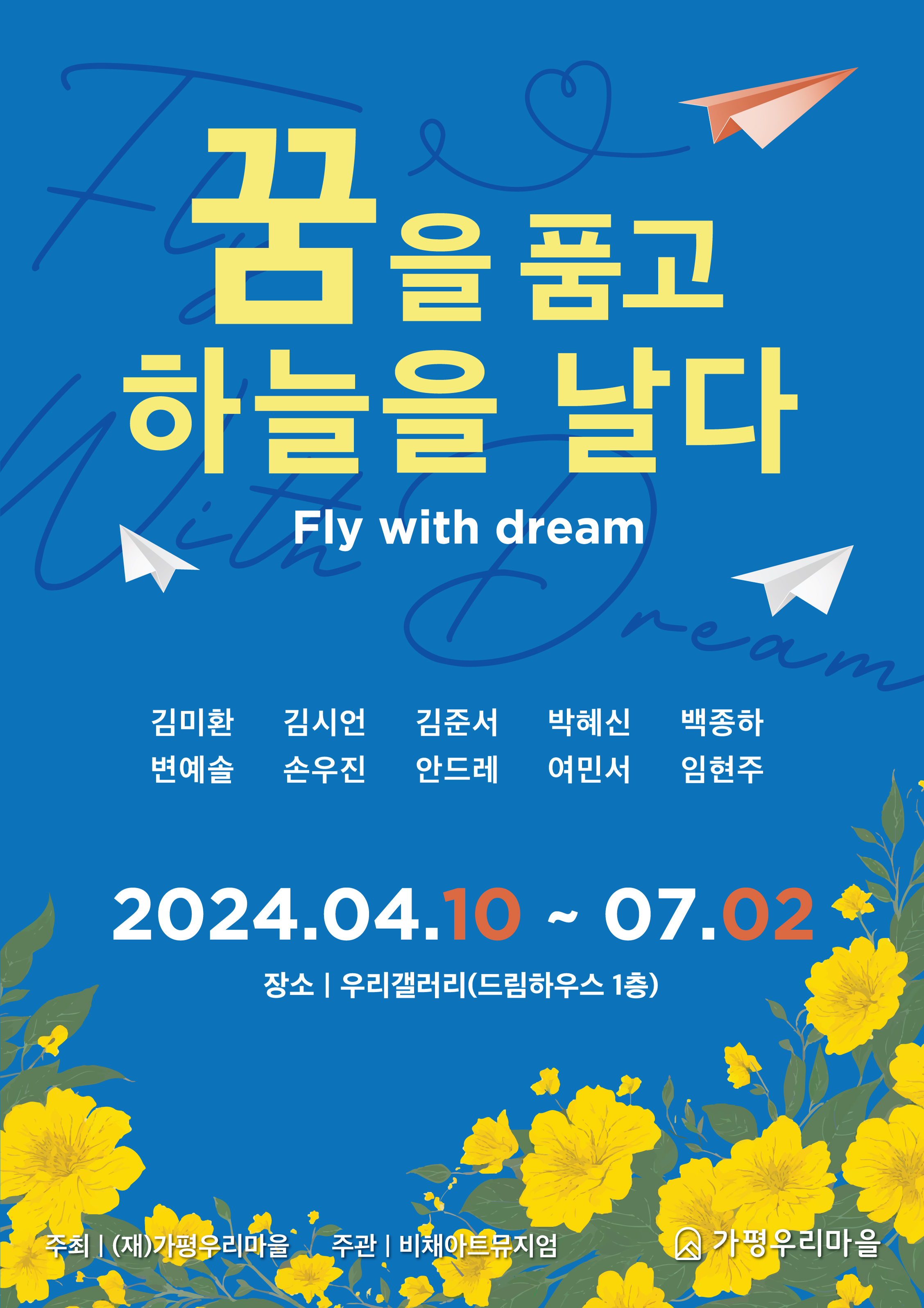 · 참여작가 : 김미환, 김시언, 김준서, 박혜신, 백종하, 변예솔, 손우진, 안드레, 여민서, 임현주 · 전시기획 : 비채아트뮤지엄 · 관람대상 : 가평우리마을 방문고객 누구나 (자유관람)