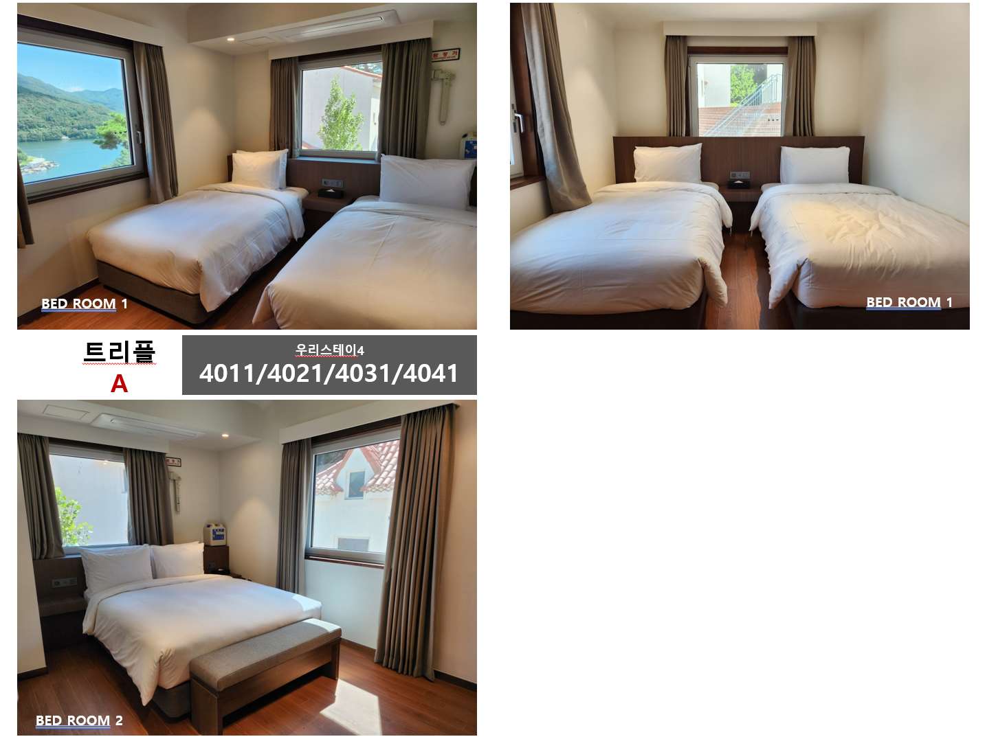 침대타입 : 더블침대 1개, 싱글침대 2개